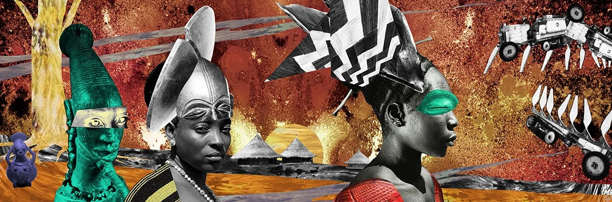 Im finalen Kapitel «In the Photo Fantastic» greifen die Künstlerinnen und Künstler auf die Methode der «kritischen Fabulation» zurück, um historische Leerstellen mit Imagination zu füllen. Raphaël Barontini kehrt den kolonialen Blick um, indem er Nobosudru, eine Frau aus dem Kongo, die 1924 zum Symbol «der afrikanischen Frau» stilisiert wurde, zur Autorin ihrer eigenen Geschichte macht. Andrea Chung erschafft mit dem Mythos von Drexciya ein paradiesisches Unterwasserreich als Ort des Überlebens für jene, die während des Sklavenhandels ins Meer geworfen wurden. Diese spekulative Bildpraxis entlässt die Porträtierten in einen Raum voller Möglichkeiten, in dem Vergangenheit, Gegenwart und Zukunft ineinanderfliessen.